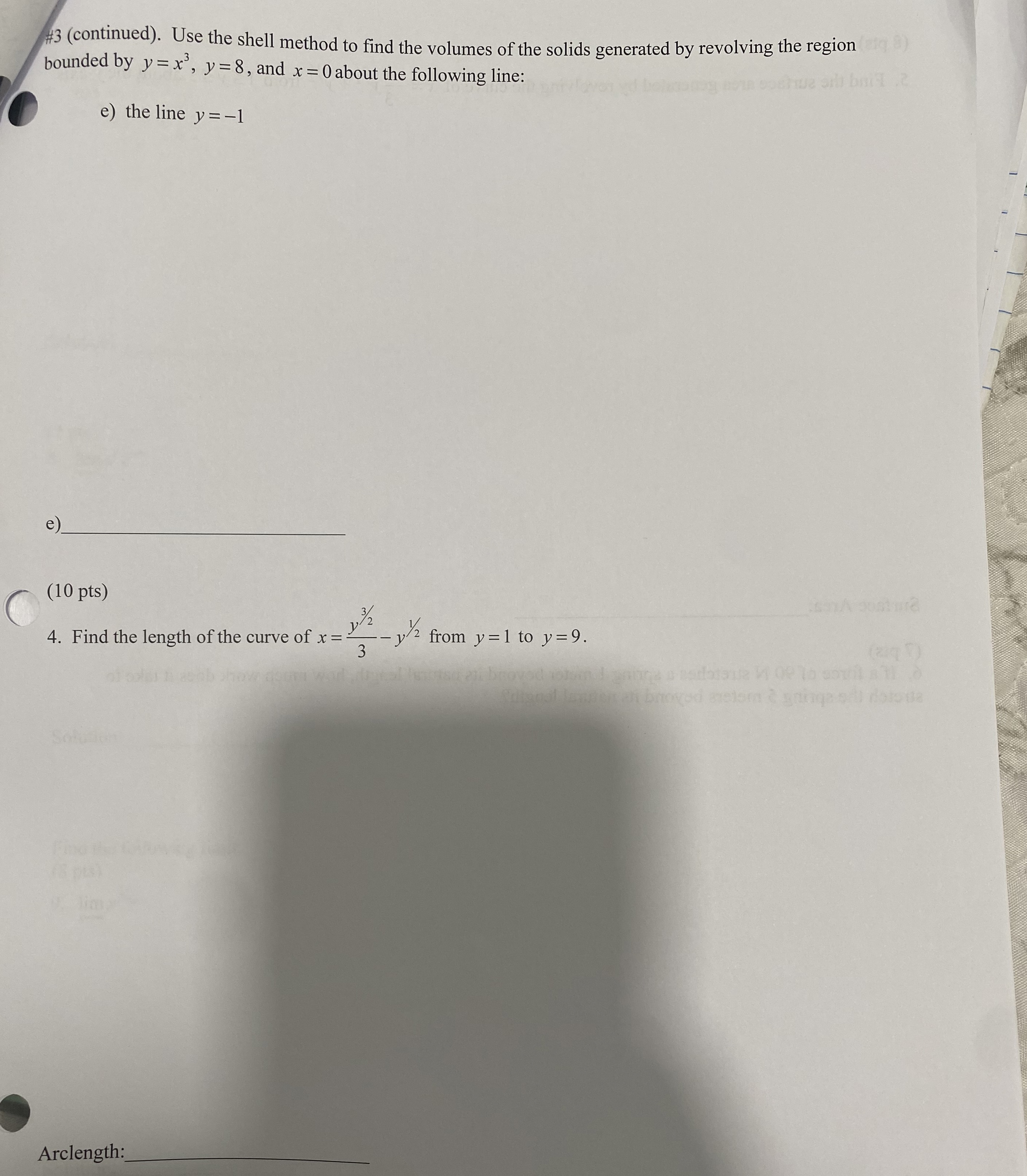 #3 (continued). Use the shell method to find the volumes of the solids generated by revolving the region bounded by