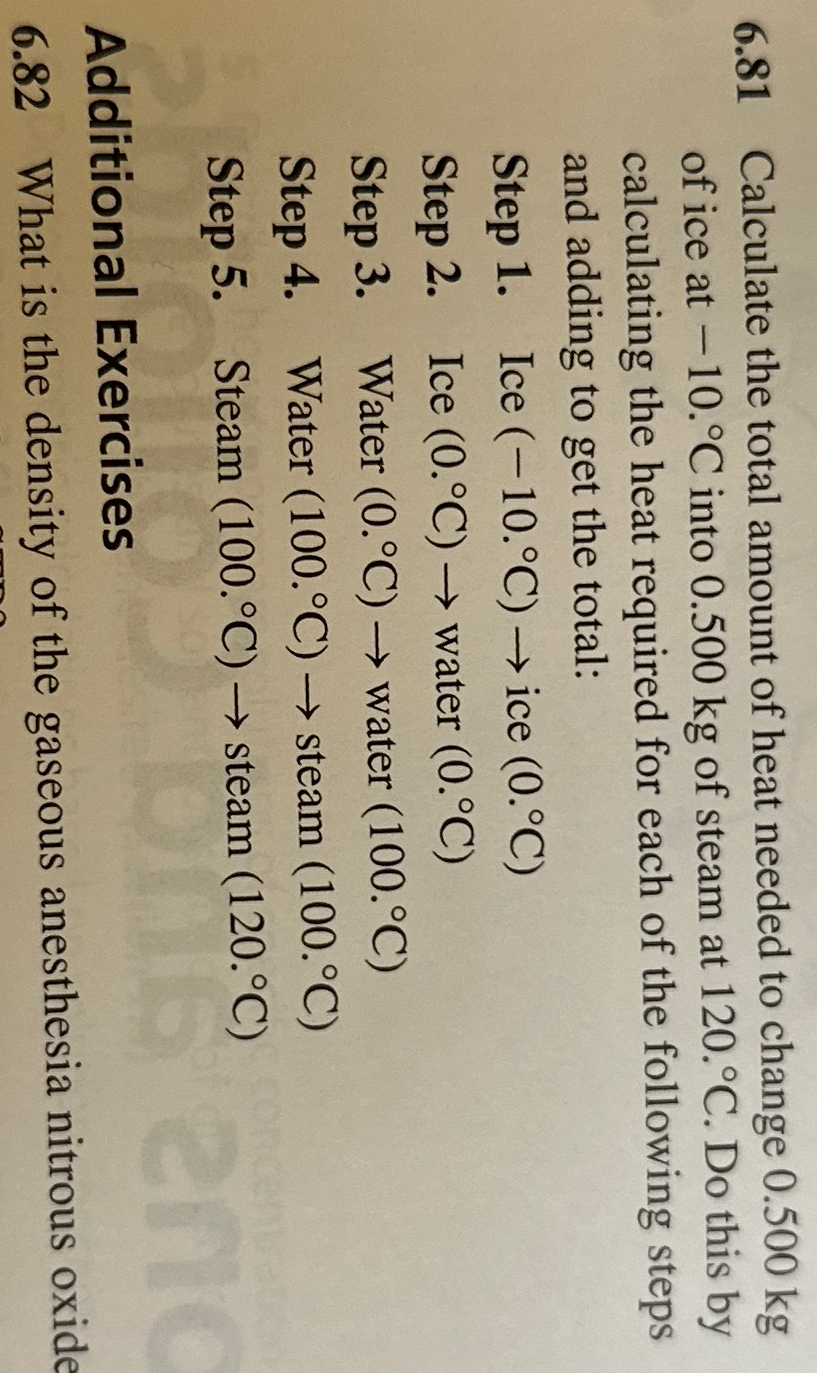 120.\deg C. Do this by calculating the heat required for each of the following steps and adding to get the total: Step 1. Ice