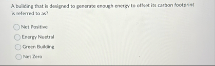 (Solved): A building that is designed to generate enough energy to offset its carbon footprint is referred to ...