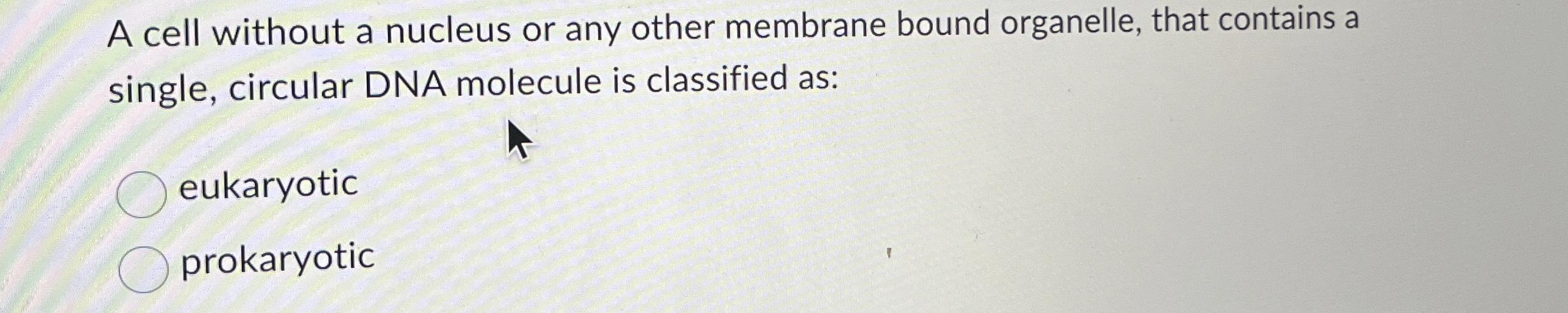 A cell without a nucleus or any other membrane bound organelle, that contains a single, circular DNA molecule is classified as: