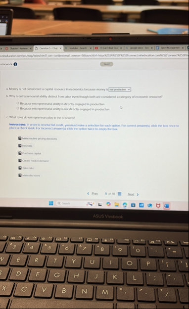 ?Because endeperworlal ataity is diectly engaged in production Became enticpreneural atility is not directive engaged in production c. What roles do entrepeneurs play in the economy? place a check mark. For incomed answerp, clock the option livice to empity the box. Maserabre prong Geomorn Monkle Archane crepal Taker raks Mase dechoose ASUS Virebod