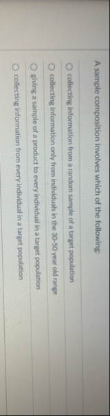 A sample composition involves which of the following: collecting information from a random sample of a target population collecting information only from individuals in the