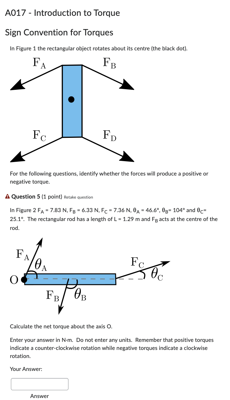 indicate a counter-clockwise rotation while negative torques indicate a clockwise