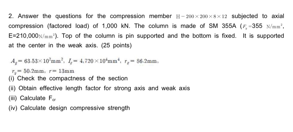 compression (factored load) of 1,000kN. The column is made of SM ,