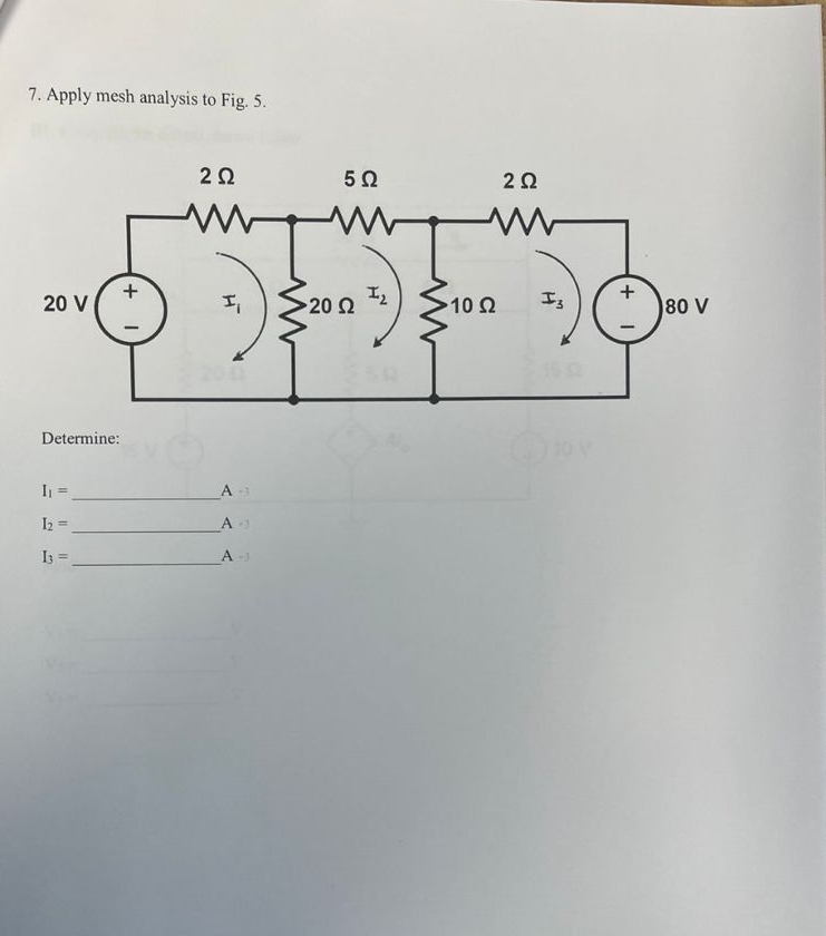 Apply mesh analysis to Fig. 5. Determine: please explain everything in detail I am studing for an exam. i will upvote thank you