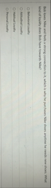 (Solved): Bob loves Nike and feels a strong connection to it, which is why he purchases Nike shoes anytime he ...