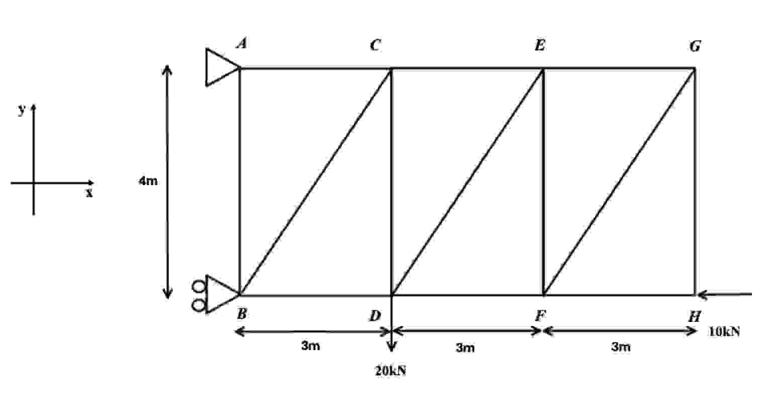Calculate all member forces of the truss structure. Reactions are not required. List the analysis results in the attached table on the next page.