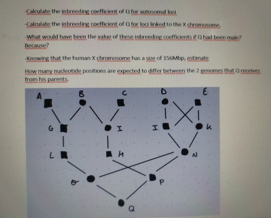 xchromosoms. What would have been the value of these inbreeding coefficients if Q had been male? Because? Knowing that the human