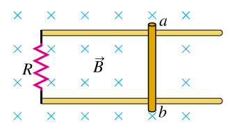 A 0.850-m-long metal bar is pulled to the right at a steady 6.0m/s perpendicular to a uniform, 0.650?T magnetic field. The bar rides on parallel metal rails connected through a 25??, resistor (Figure 1), so the apparatus makes a complete circuit. Ignore the resistance of the bar and the rails.