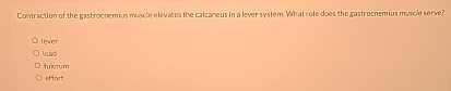 (Solved): Contraction of the gastrocnemisis muscie elevates the calcancus in a lever system What role does the ...