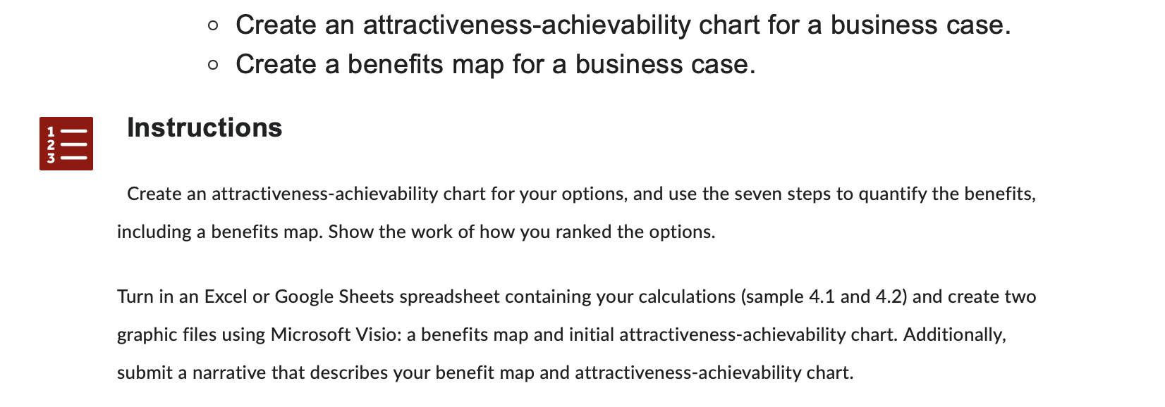 Create an attractiveness-achievability chart for your options, and use the seven steps to quantify the benefits,