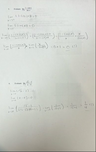 \lim_(x->0)((1-cos(x))/(x))*\lim_(x->0)((x)/(sin(x)))=0*1=0(?)Evaluate:
