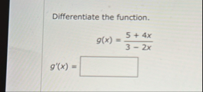 (Solved): Differentiate the function. g(x)=(5 4x)/(3-2x) g^(')(x)= ...