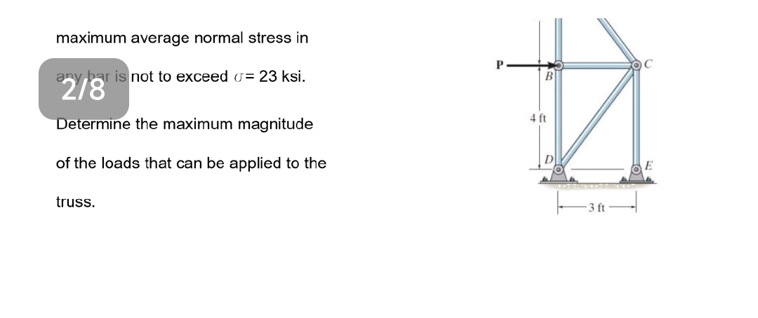 \sigma =23ksi. Determine the maximum magnitude of the loads that can be applied to the truss.