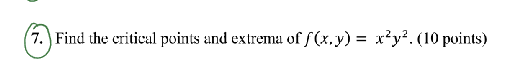 Find the critical points and extrema of f(x,y)=x^(2)y^(2). (10 points)