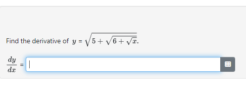 / find-the-derivative-of-y-sqrt-5-sqrt-6-sqrt-x-dy-dx-pa466