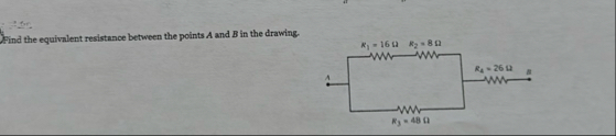 (Solved): Find the equivalent resistance between the points A and B in the drawing. ...