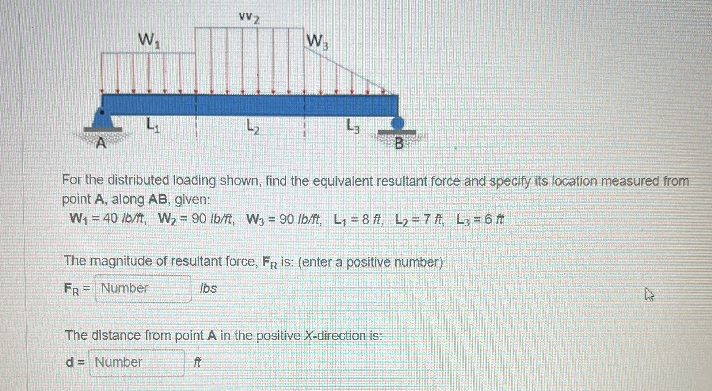 W_(1)=40l(b)/(t),W_(2)=90l(b)/(f)t,W_(3)=90l(b)/(f)t,L_(1)=8ft,L_(2)=7ft,L_(3)=6ftThe magnitude of resultant force,