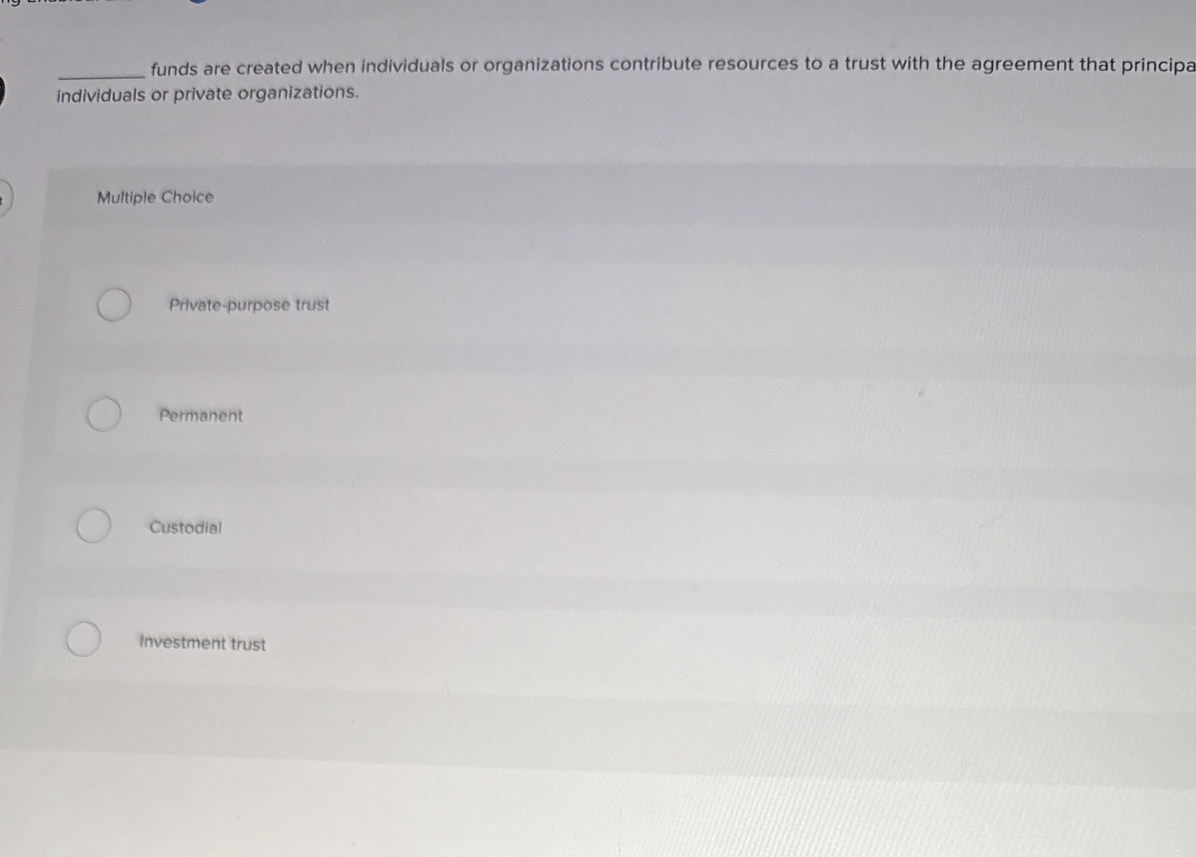 (Solved): funds are created when individuals or organizations contribute resources to a trust with the agr ...