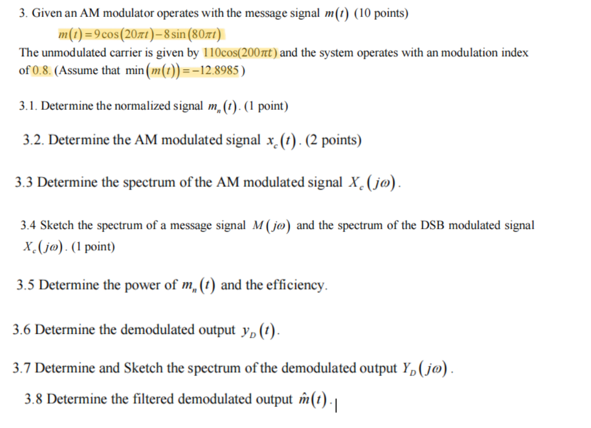 3.3 Determine the spectrum of the AM modulated signal x_(c)(j\omega ).