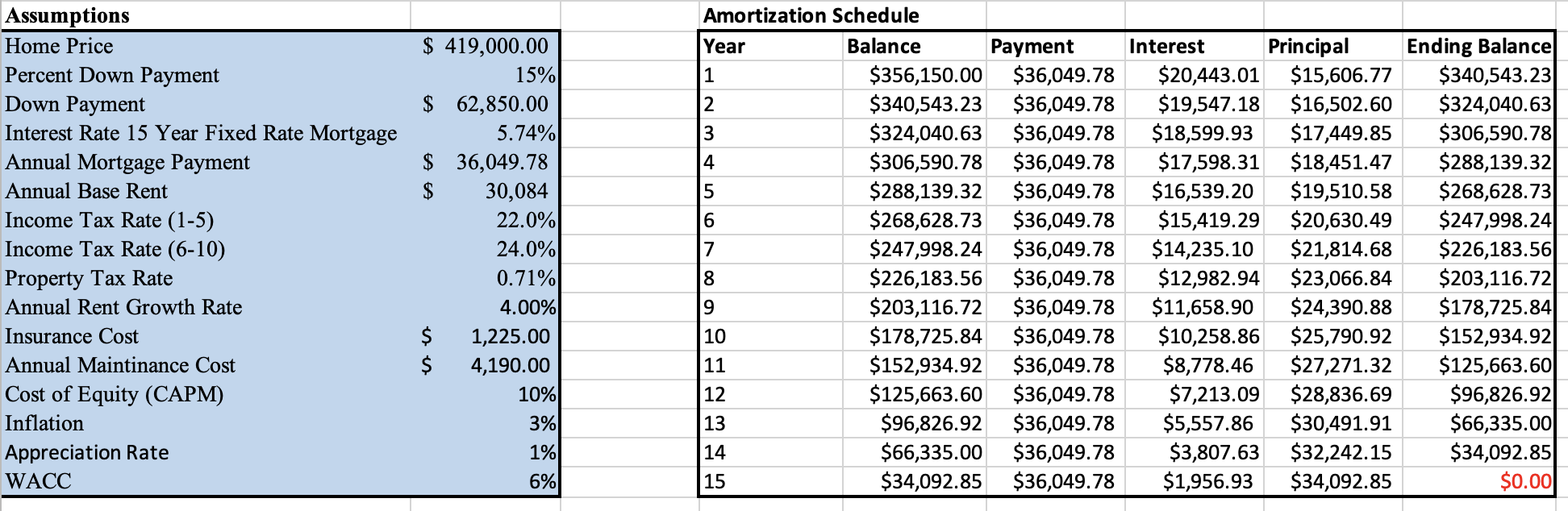 Given these assumptions, calculate the NPV/APV of this project to purchase a home and convert it into a rental property. You will sell the home at the end of year 10. exclude financing costs from your cash flows and NPV.