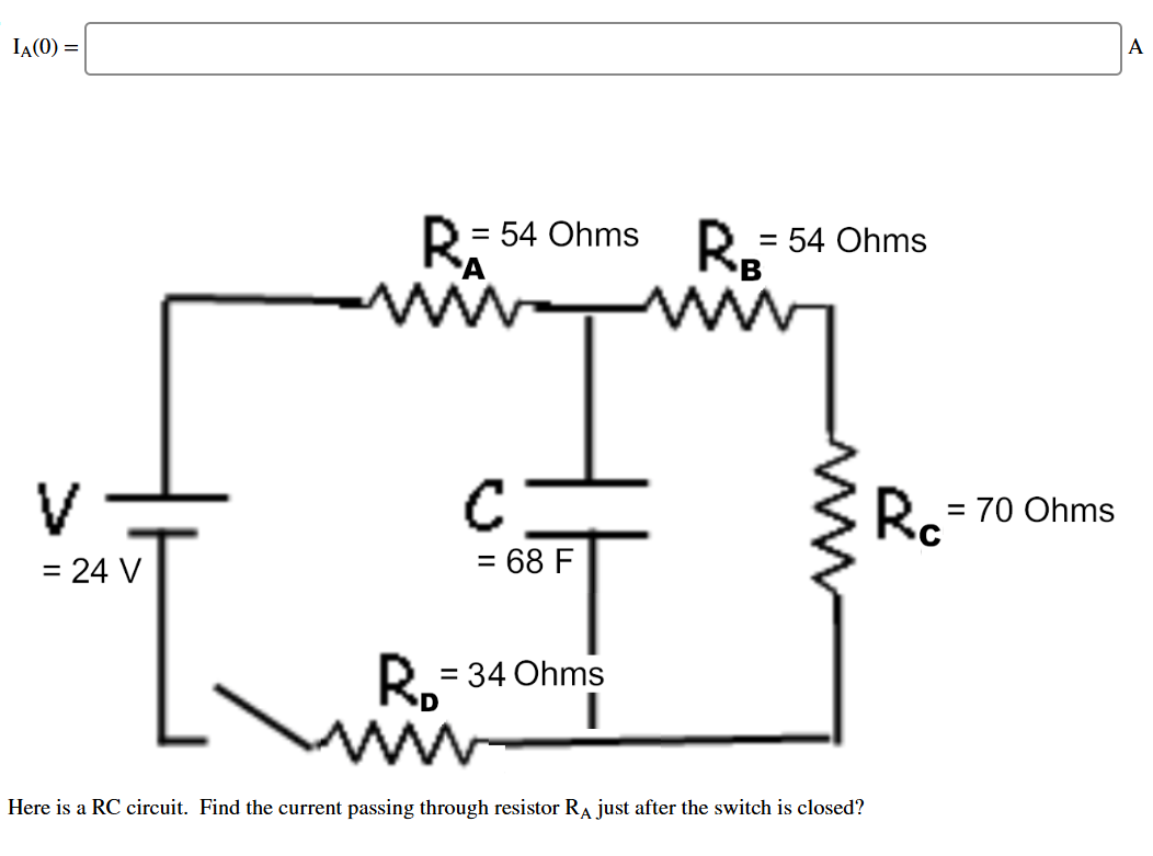 Here is a RC circuit. Find the current passing through resistor R_(A) just after the switch is closed?