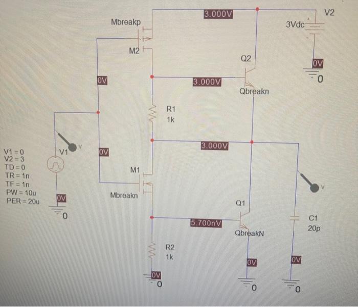 (Solved): how to calculate Tphl Tplh of bicmos inverter in pspice orcad and estimate the dynamic power consump ...