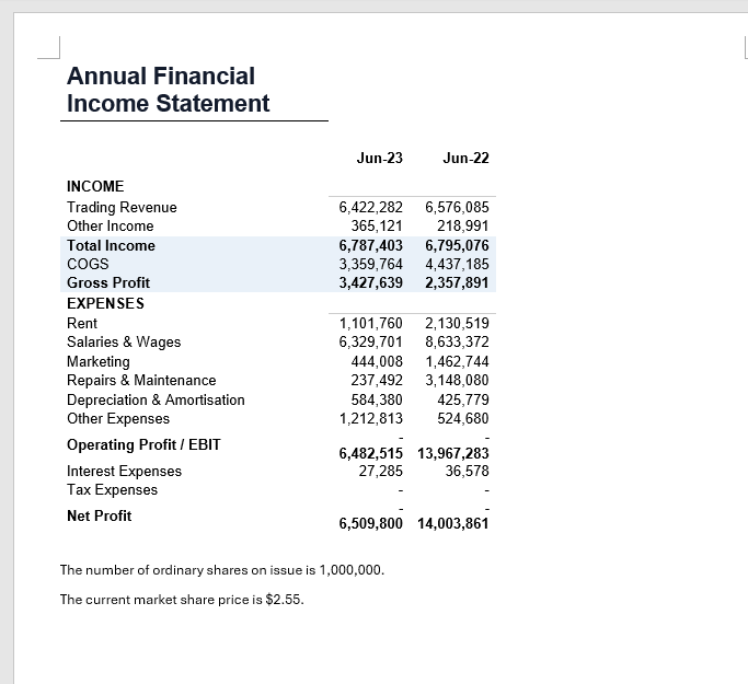 I am also given this Income statament data sheet and asked me to create an Income statement, but I am confused again. Since this is already an Income sheet, what am I supposed to do? I am super confused.do I need to fix this income sheet or what do I need to doAnnual Financial Income Statement The number of ordinary shares on issue is