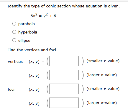 identify-the-type-of-conic-section-whose-equation-is-given-6x-2-y-2-6-parabola-hyperbola-ellip-pa596