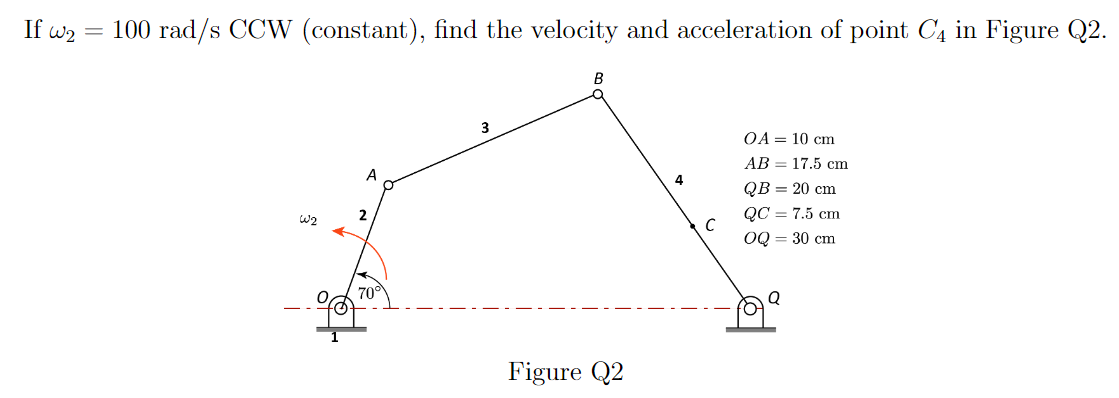 in Figure Q2. Please use kinematic analysis. Not graphical or instantaneous center approach. Figure Q2
