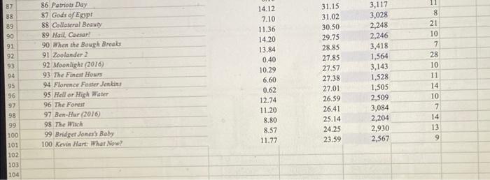 Module I Assignment - Descriptive Statistics Directions: Type final answers after each question on Microsoft Word. Make sure to show formulas used in Microsoft Excel, which should also be attached. - Earn up to 20 points for accurately completing all parts of this problem. - Earn up to 5 points for turning assignment on time. - Worth a total of 25 points. Task: You will have to prepare descriptive statistics based on the Case Problem 2: Movie Theater Releases. You should see a Microsoft Excel document attached in the Module I Assignment link. 1. When looking at the top 100 movies of 2016, prepare these basic descriptive statistics on opening gross sales and total gross sales. You will need to show your Microsoft Excel formulas and place them to the right of the data so that they can be seen. (Worth 20 points) a. What is the mean, median, and mode of opening gross sales? (Worth 6 points) b. What is the mean and median of total gross sales? (Worth 4 points) c. Which movie has the highest total gross sales? Lowest total gross sales? (Worth 4 points) d. What is the variance of this sample for total gross sales (Worth 3 points) 0. What is the standard deviation of this sample? (Worth 3 points)