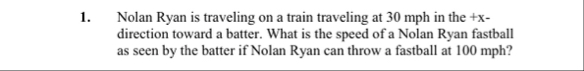 direction toward a batter. What is the speed of a Nolan Ryan fastball as seen by the batter if Nolan Ryan can throw a fastball at 100 mph ?