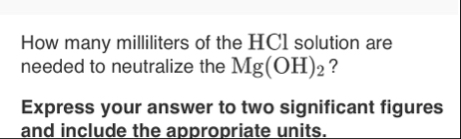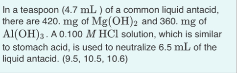 0.100MHCl solution, which is similar to stomach acid, is used to neutralize 6.5 mL of the liquid antacid