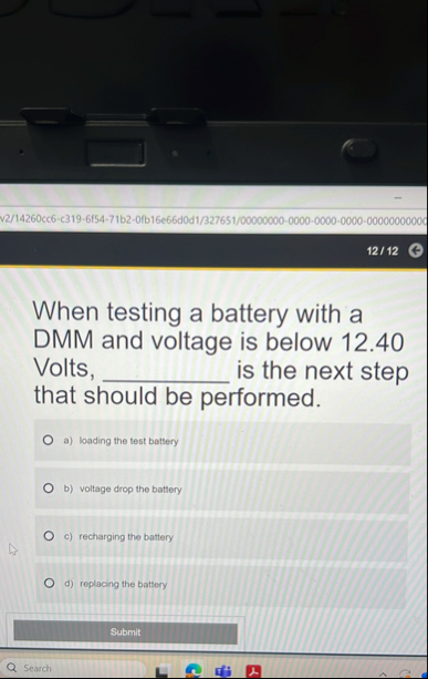 When testing a battery with a DMM and voltage is below 12.40 Volts,