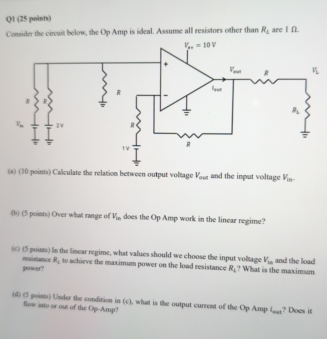 (c) ( 5 points) In the linear regime, what values should we choose the input voltage