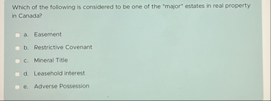 Which of the following is considered to be one of the "major" estates in real property in Canada?