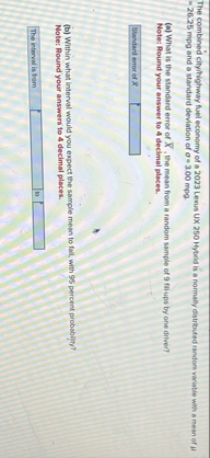 The combined cityinighway fuel economy of a 2023 Lenus UX 250 Hybrid is a normally distributed random variable weis a mean of