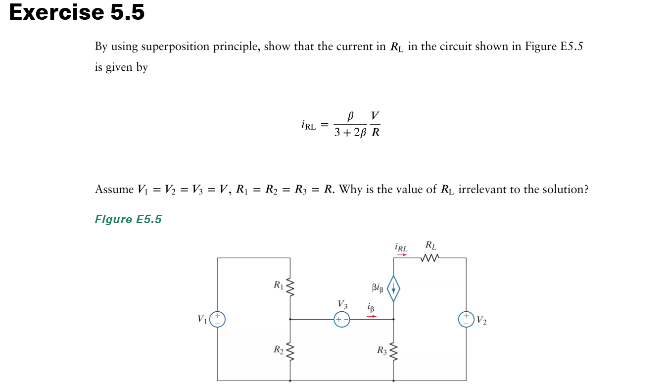 By using superposition principle, show that the current in R_(L) in the circuit shown in Figure E5.5