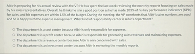 ? The department is a profit center because Aibir is responsible for generating sales revenues and maintaining experies.