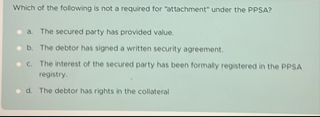 c. The interest of the secured party has been formaly registered in the PPSA registry.