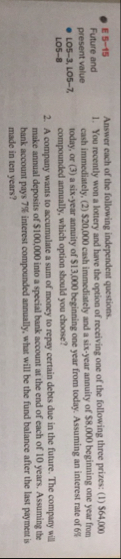 $8,000 beginning one year from today, or (3) a six-year annuity of