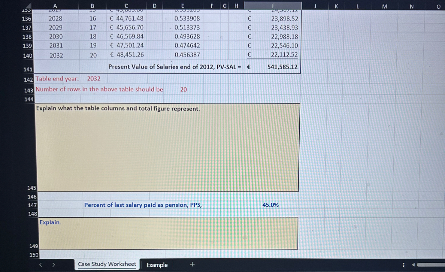 Modify accordingly the entries below and answer the questions presented in the pdf file Case Study TVM - Questions & Instructions.pdf. You may have to add/delete rows from the tables below depending on the years to retirement and the number of pension payments. Be careful not to mess up the embedded formulas.