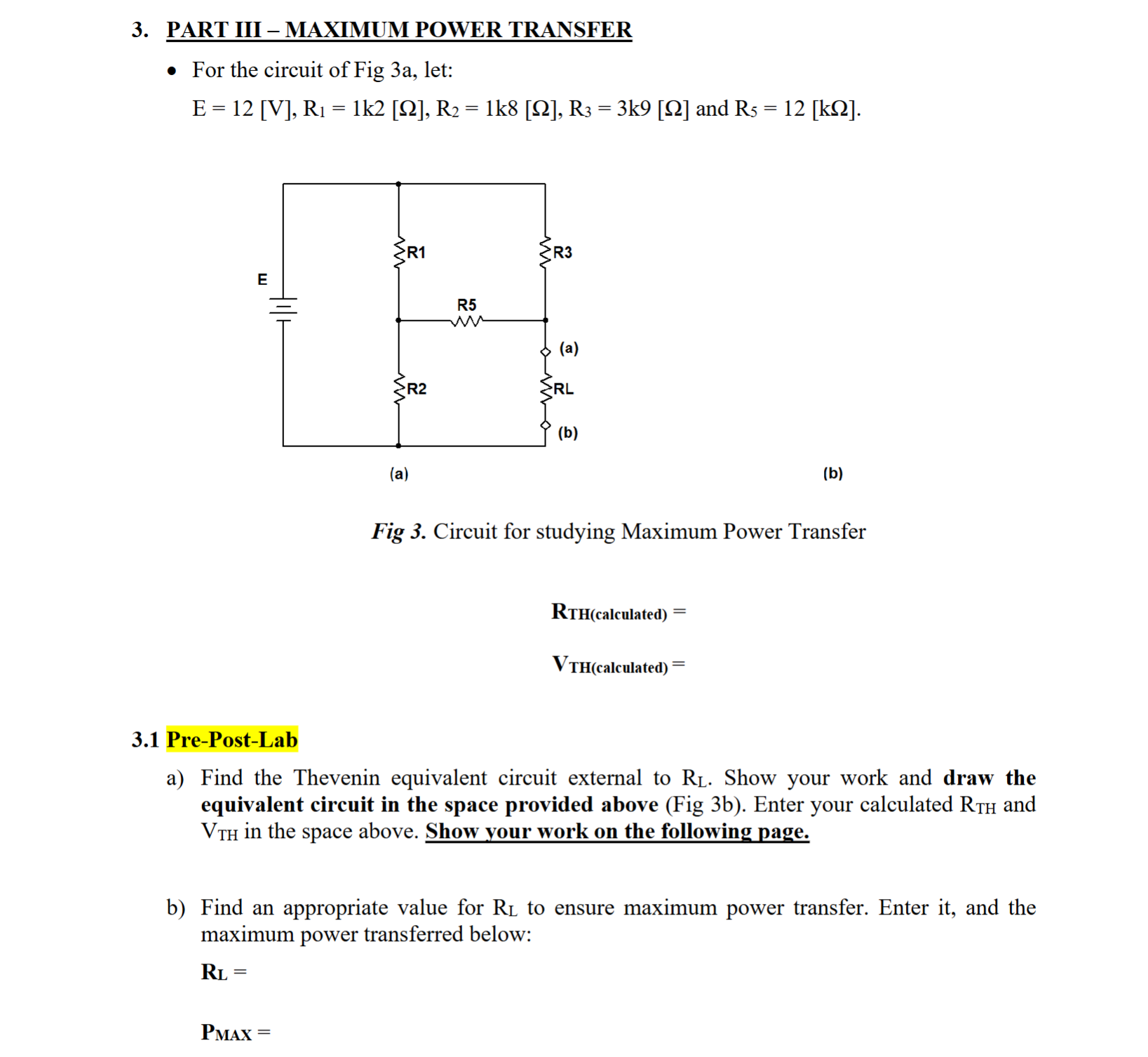 equivalent circuit in the space provided above ( Fig 3 b ). Enter your calculated R_(TH) and