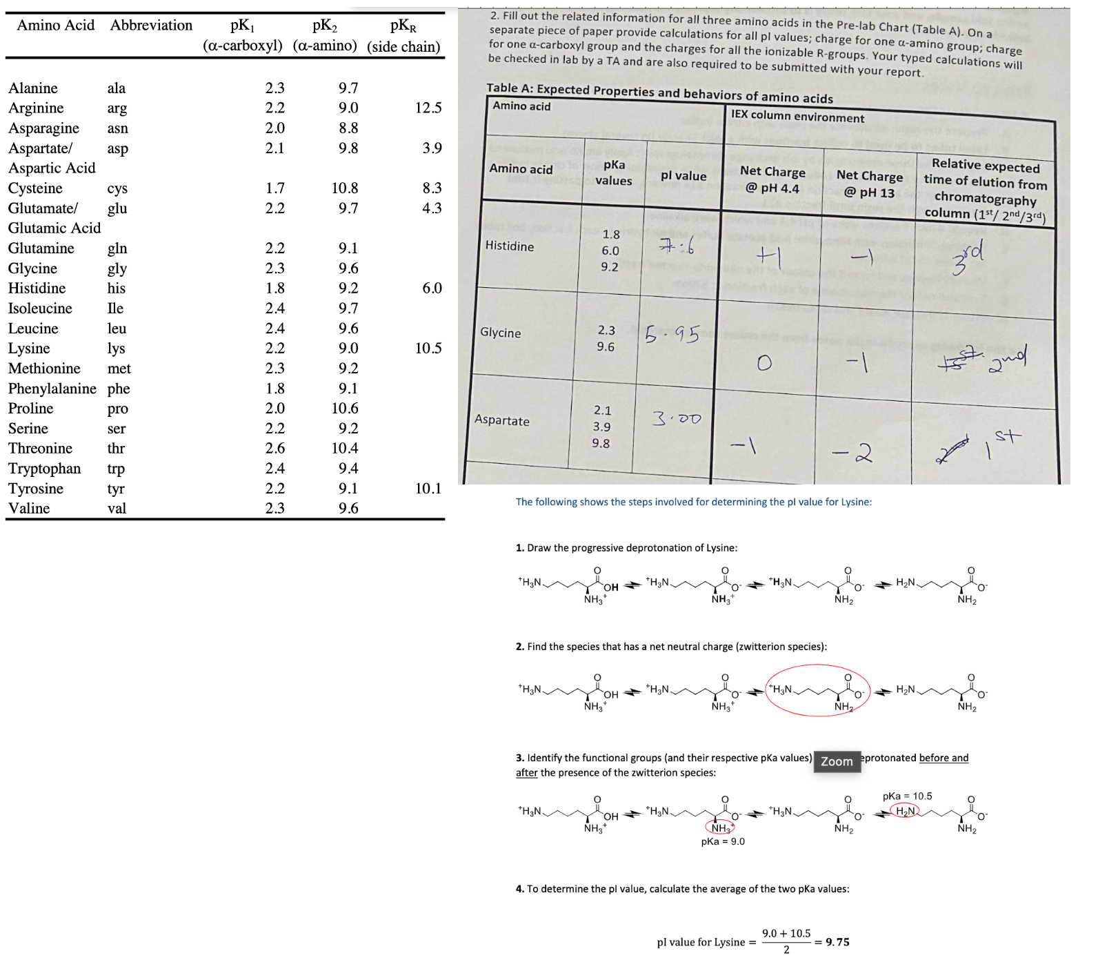 Fill out the related information for all three amino acids in the Pre-lab Chart (Table A). On a