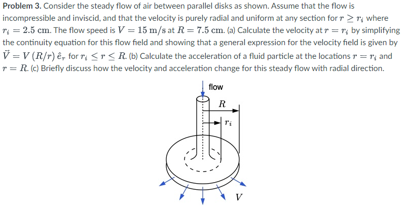 Problem 3. Consider the steady flow of air between parallel disks as shown. Assume that the flow is