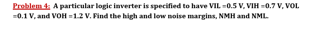 Problem 4: A particular logic inverter is specified to have VIL =0.5V,VIH=0.7V, VOL