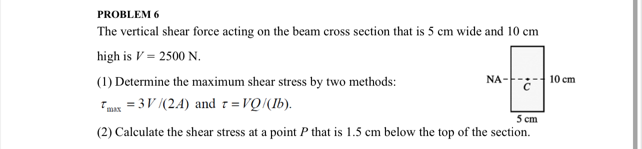 \tau =V(Q)/(Ib). (2) Calculate the shear stress at a point