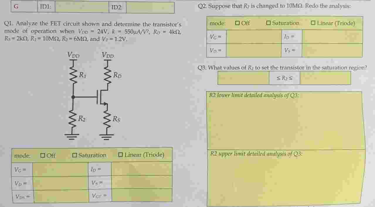 Q1. Analyze the FET circuit shown and determine the transistor's