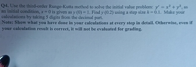 Q4. Use the third-order Runge-Kutta method to solve the initial value problem: