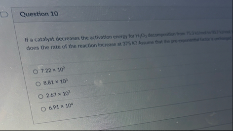 Question 10 If a catalyst decreases the activation energy for